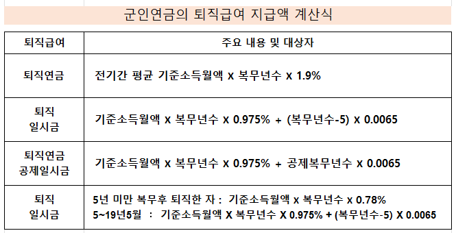- 군인연금 인상 기준: 전년도 연평균 소비자물가상승률